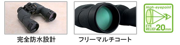 長時間観察や眼鏡をかけての使用に最適のハイアイポイント設計、本格的な完全防水設計です。